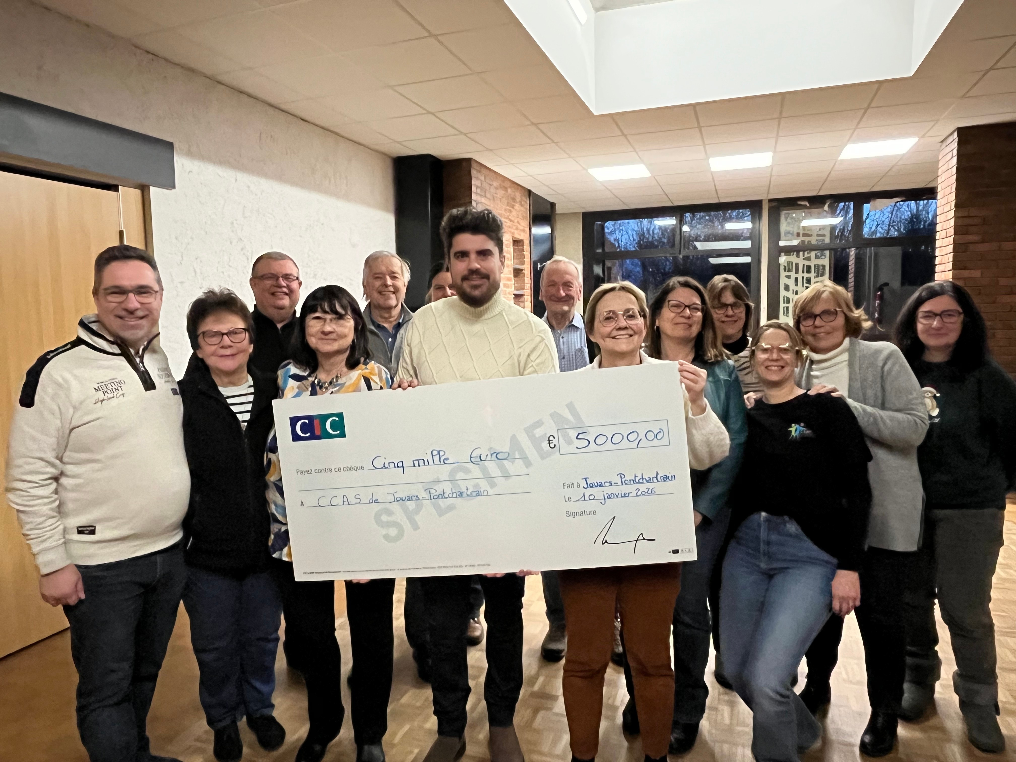 À cette occasion, une remise symbolique de chèque a été effectuée en présence de Monsieur Mengelle-Touya, maire et président du CCAS de Jouars-Pontchartrain.
